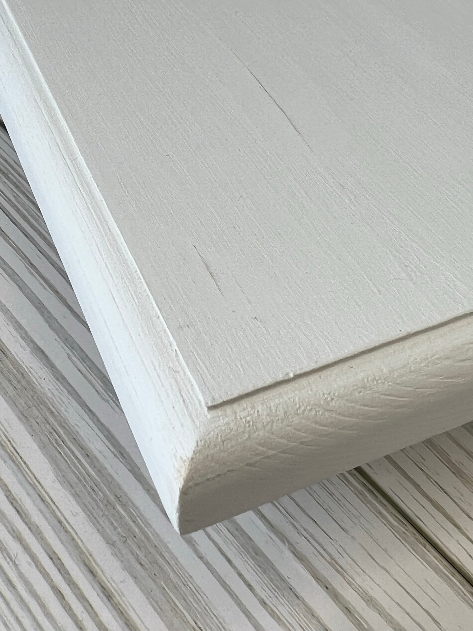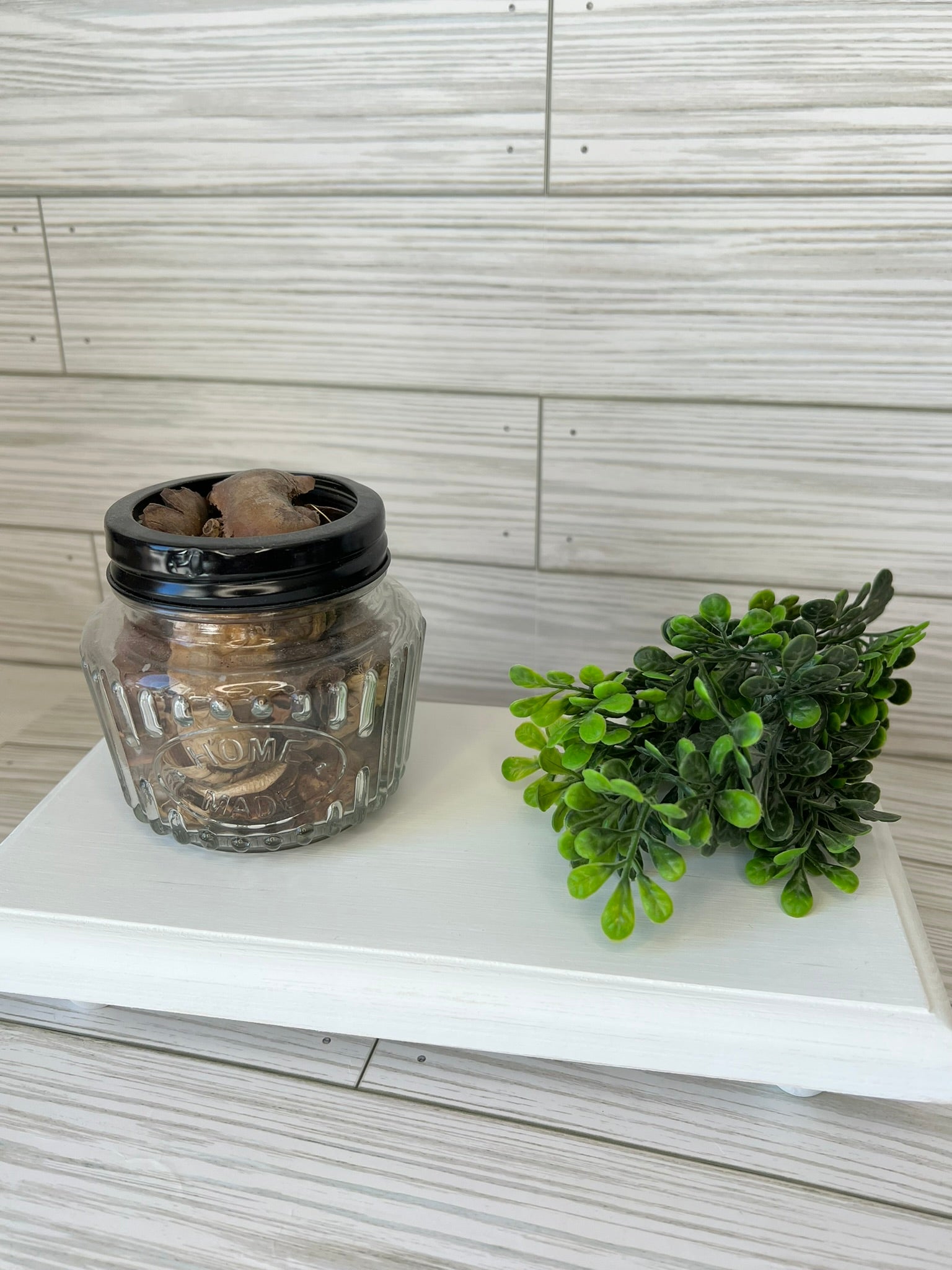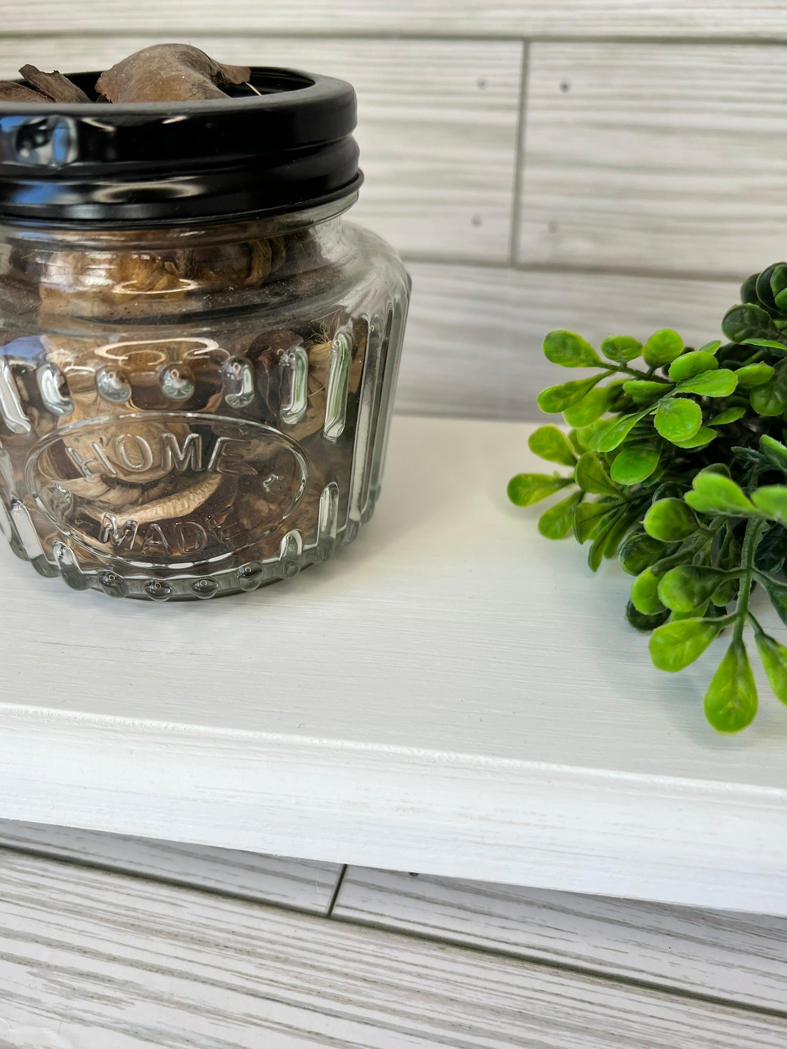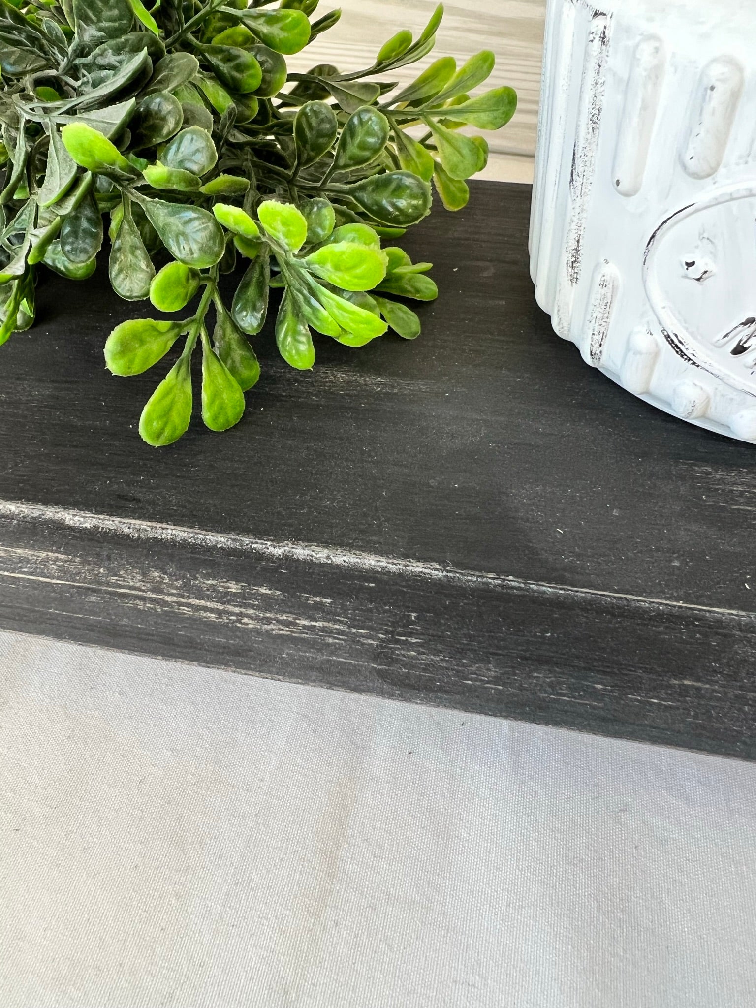 This single tray counter riser is finished in Distressed Black or White for a very rustic look. Edges of tray are routed, tray sits atop 4 candle cup feet for tabletop protection. Trays have matte, rustic look to them.