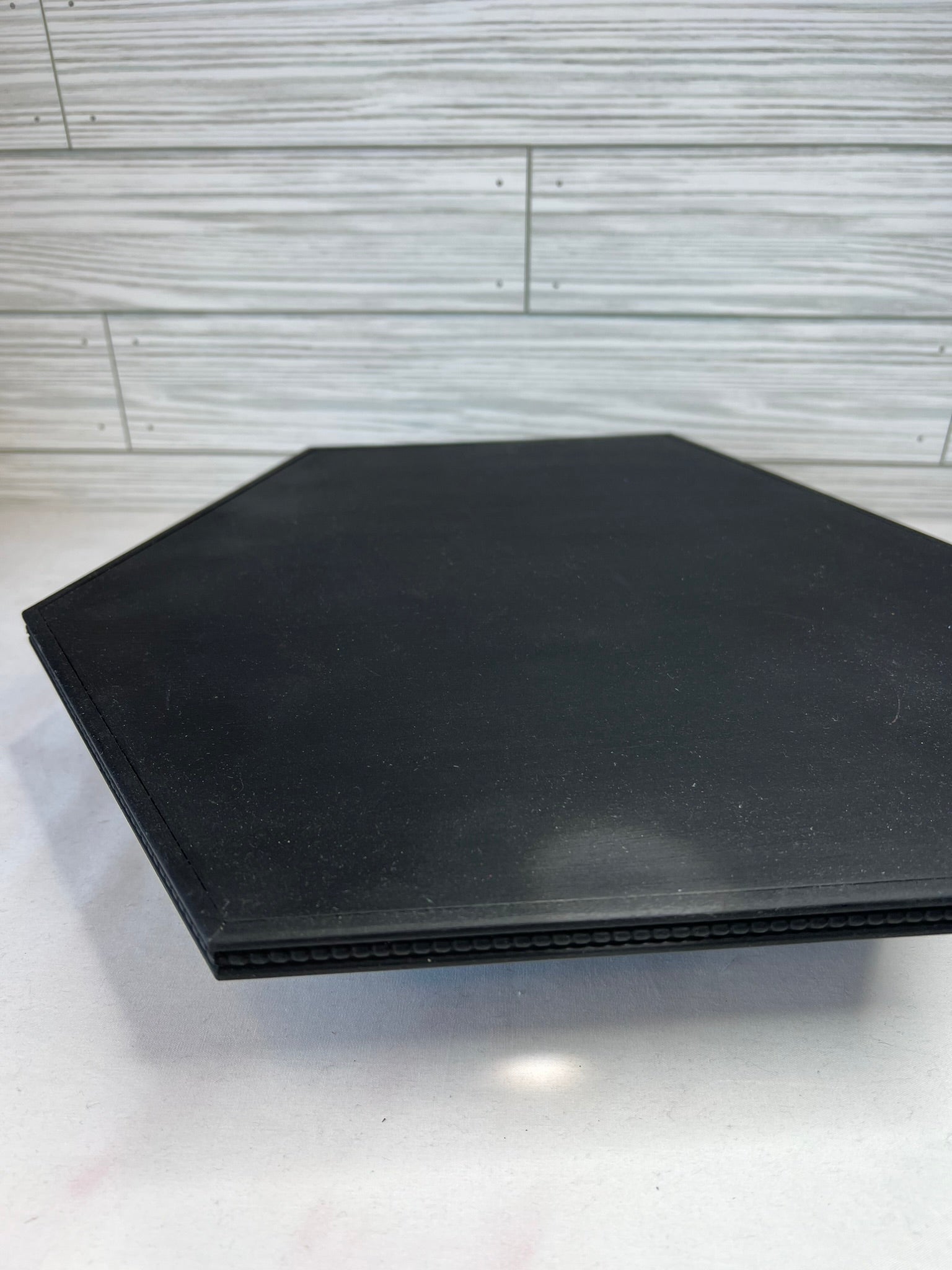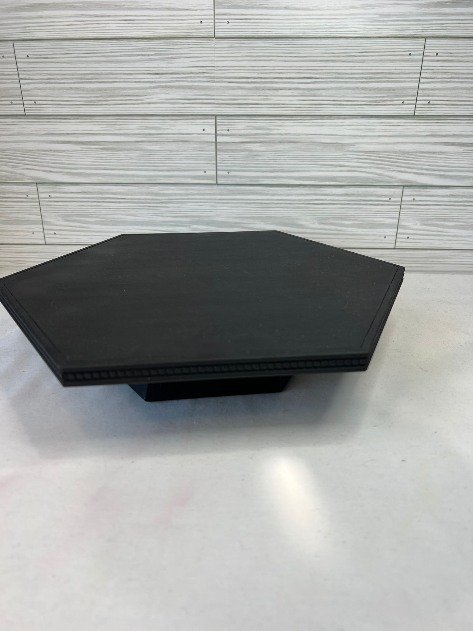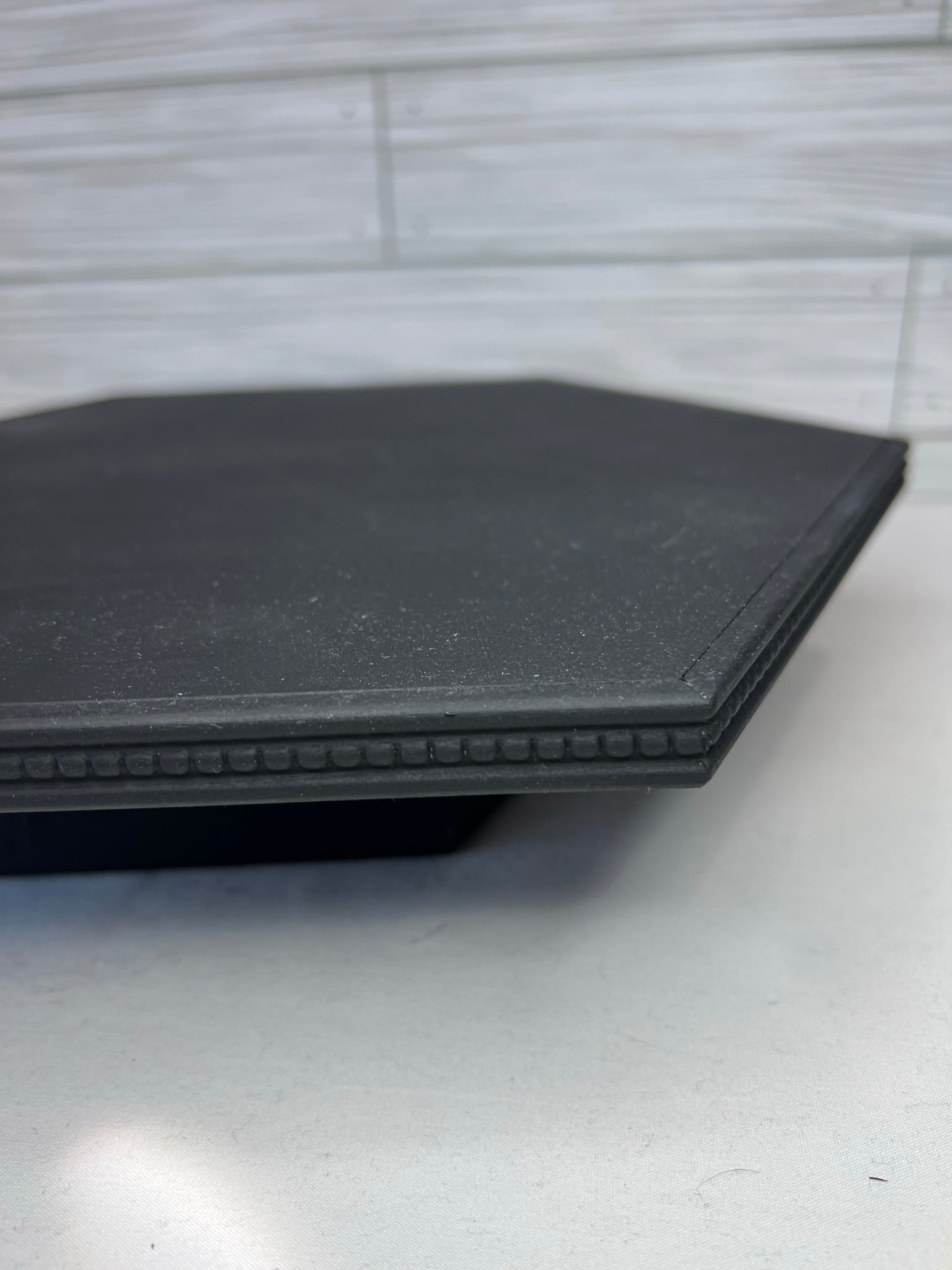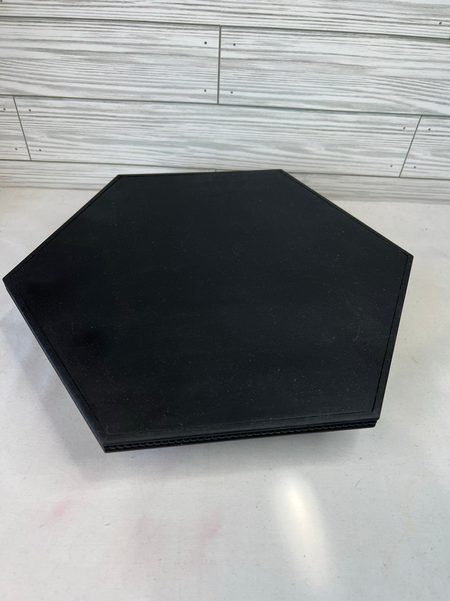Introducing our BLACK HEXAGON PEDESTAL COUNTER RISER! This stylish display stand is perfect for showcasing your favorite items with a touch of elegance. Made from lightweight wooden materials, it effortlessly adds a modern twist to any countertop or table. The distinctive hexagon shape and decorative edge give it a unique and eye-catching appeal. Get ready to beautifully elevate your decor and highlight your cherished possessions with this must-have addition!